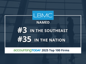 The prestigious Accounting Today awards follow additional achievements for LBMC, including being named a USA Today Top Recommended Firm and a Best Workplace in Consulting & Professional Services.